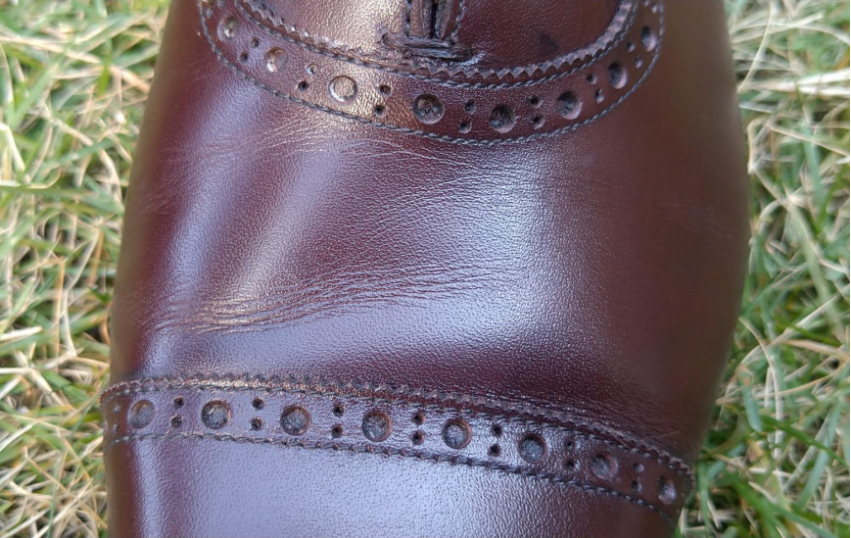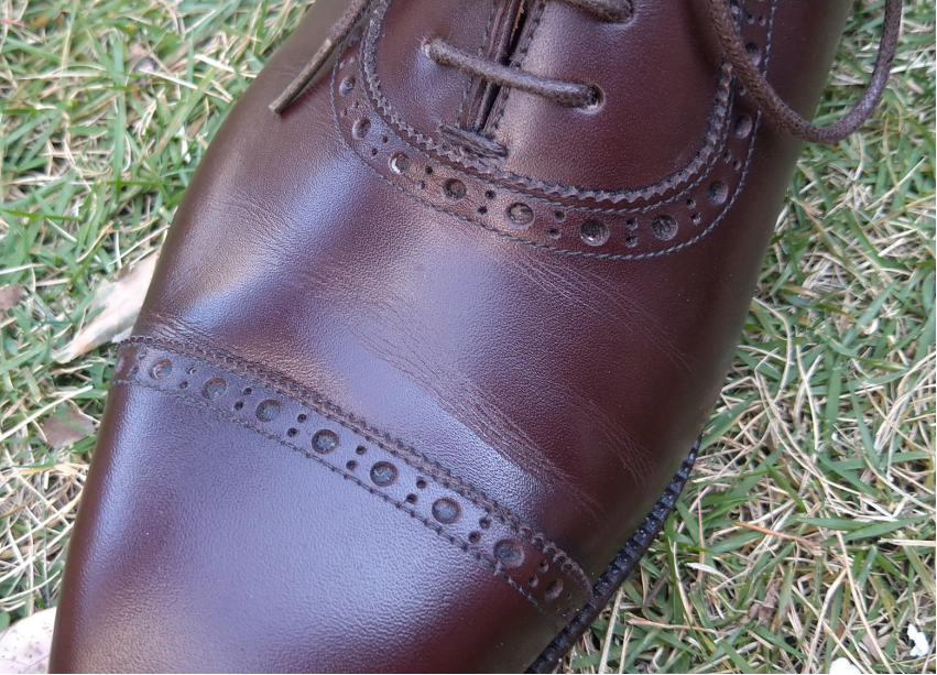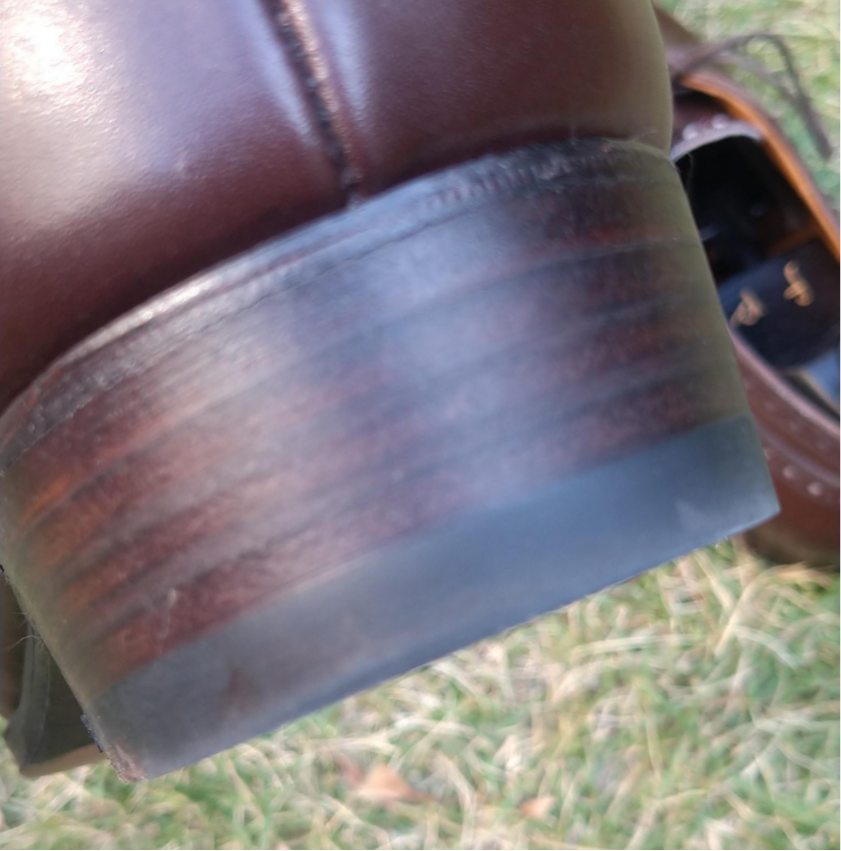 鞋头的磨损,在我开箱然后测评的这几个里面,是表现最好的。我现在逐渐怀疑,也许并不是皮革的差异,仅仅是鞋子合脚程度的问题?
